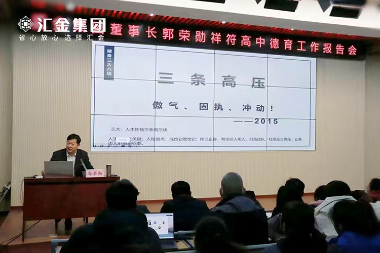 分享会上,郭荣勋董事长将汇金集团企业文化与青少年成长的实际需求相结合,围绕修身三大八项、做人、做事以及核心文化展开论述。郭董强调:“学生的使命,即三年高中的终极使命——让知识改变命运,改变自己的命运、改变父母的命运、改变家族的命运!”从做人的道理到做事的方法,从学习目标的制定到人生方向的规划,郭董以自身的拼搏历程为鉴,娓娓道来。两个小时的分享,同学们全程聚精会神,深受触动。
